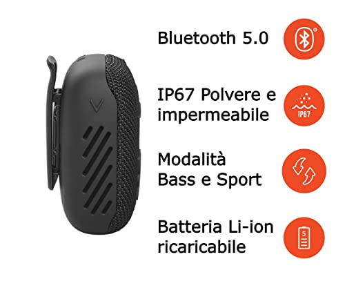 Il Wind 3S è un casse Bluetooth portatile e resistente di JBL, perfetto per chi ama gli spostamenti e l'avventura. Grazie alla sua leggerezza e compattezza, può accompagnarti ovunque tu voglia andare, che sia su percorsi off-road, in bicicletta o in qualsiasi altra avventura. Anche se piccola, la Wind 3S è dotata di un suono pieno e potente tipico di JBL Signature, ed è anche resistente all'acqua e antipolvere IP67, il che la rende ideale per il tuo tempo libero, ovunque esso sia. Con la Wind 3S, la tua musica ti seguirà ovunque: basta agganciarla ai tuoi vestiti o allo zaino, oppure fissarla facilmente al manubrio della tua bici, del tuo scooter o della tua moto grazie al supporto apposito. JBL cassa Bluetooth Wind 3S può riprodurre le tue canzoni preferite dal tuo smartphone per un massimo di cinque ore, grazie alla sua batteria integrata agli ioni di litio. Inoltre, la cassa JBL Wind 3S ha due modalità EQ diverse, una normale e una con amplificazione dei bassi, in modo che tu possa godere del suono giusto, sia che tu stia facendo mountain bike o rilassandoti sulla spiaggia.